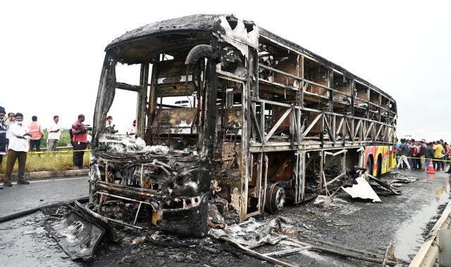 (c) Sky News 2025: At least 25 killed as bus bursts into flames after crash with motorbike in India