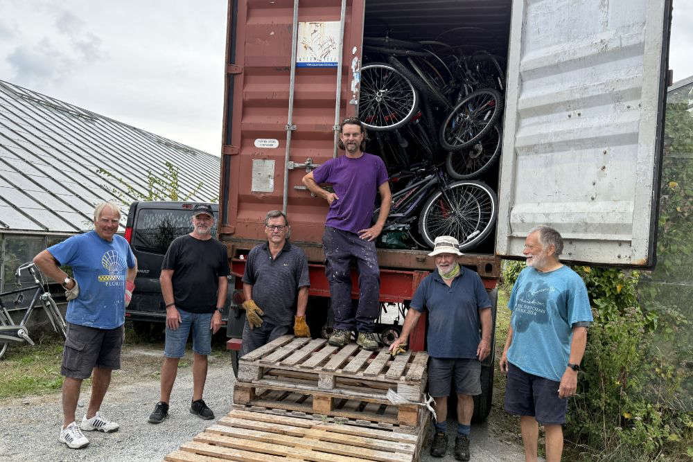Allister says people contact him directly and he often collects the no longer needed bikes and stores them in a greenhouse until enough are ready to be shipped to Re-Cycle in the UK.