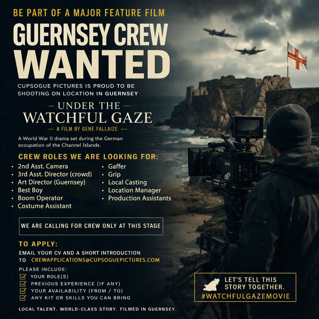 Guernsey born director Gene Fallaize recently announced he would be bringing his team from Cupsogue Pictures to Guernsey to film a new World War Two drama titled 'Under the Watchful Gaze'.