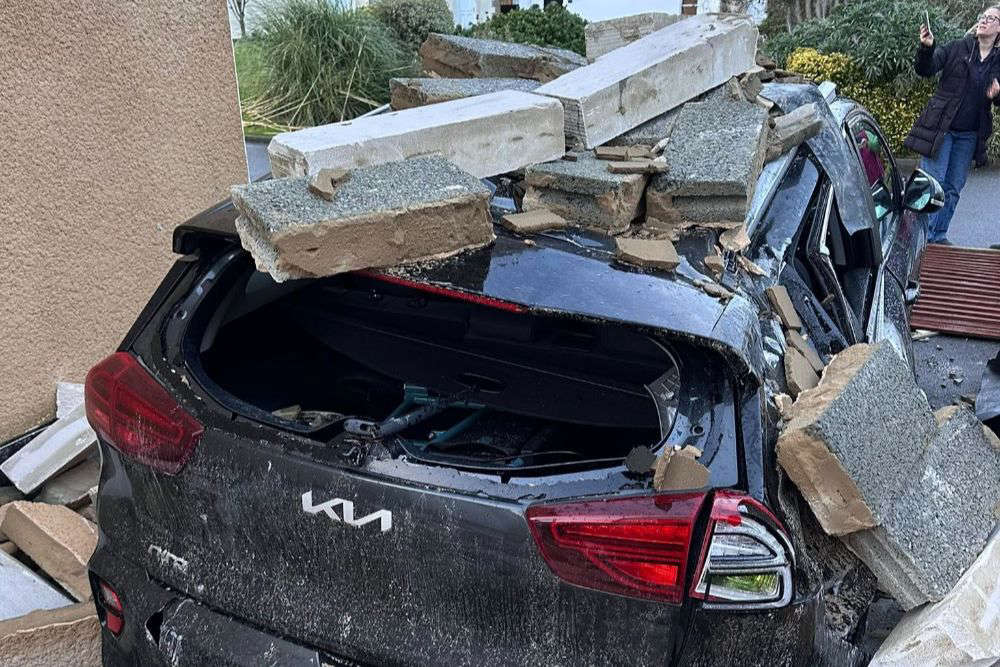 "It's the whole side of the roof that's come down, and it's all landed straight on their car. It's crushed it, it's a write-off.