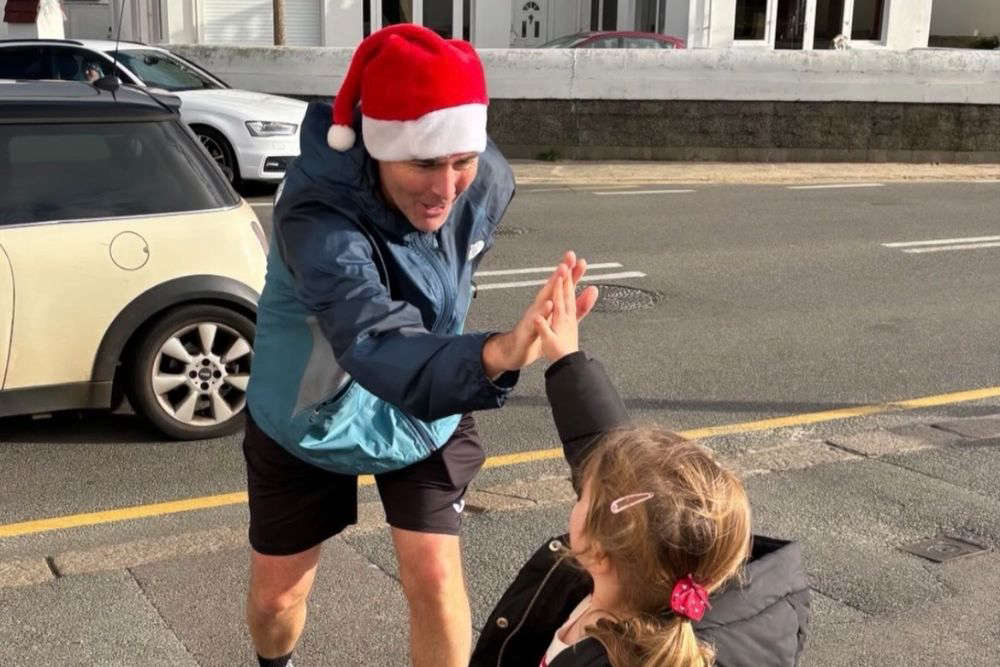He will complete the last day of the challenge at La Fregate at 1pm, with many of the school's children and families there to cheer him across the finish line.