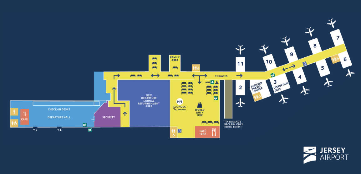 Ports of Jersey says there will be no impact on flights or at check-in, and all the food and drinks and duty free shop offerings will remain available, albeit accessed through different routes or moved to temporary spaces.